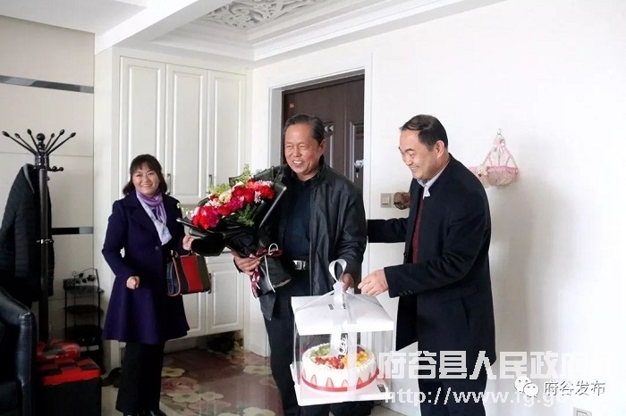 2月27日,劳动模范张买旺过生日,县总工会为他送去鲜花和蛋糕,为他庆祝生日。