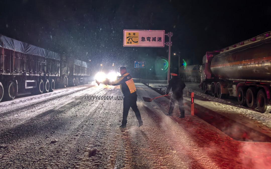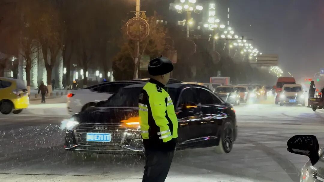 “师傅,刹车轻点踩,方向盘握紧!”交警小崔一边喊着,一边弯腰帮一辆打滑的小车垫石头。他的脸冻得通红,手却稳稳地托住车身。