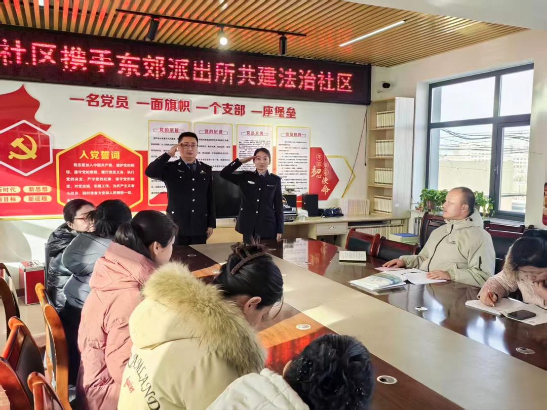 靖边公安的法治宣传从不是生硬的条款罗列,而是融入生活的贴心守护:双伙场社区里,民警依托党员双报到机制,与居民围坐一堂,用家长里短的“唠嗑式”讲解,把防火防盗防诈骗知识变成实用贴士;东郊派出所民警在东新区社区广场上,面对面拆解“线上诈骗+线下取现”新手法,帮群众筑牢反诈防线;天赐湾派出所则把法律课堂搬进企业商铺,为20余家商户送上定制化安全指南。