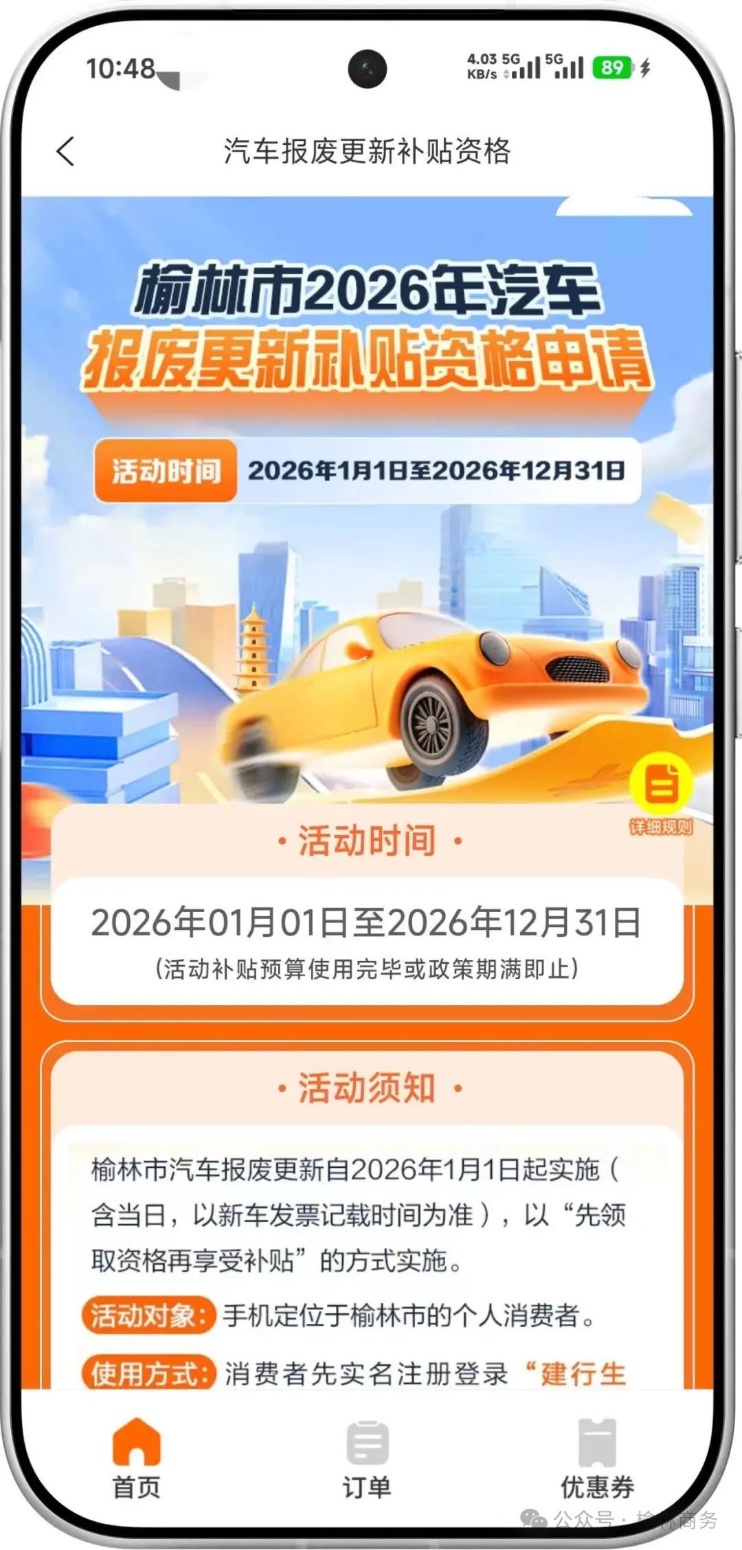 进入“榆林市2026年汽车报废更新补贴资格申请”