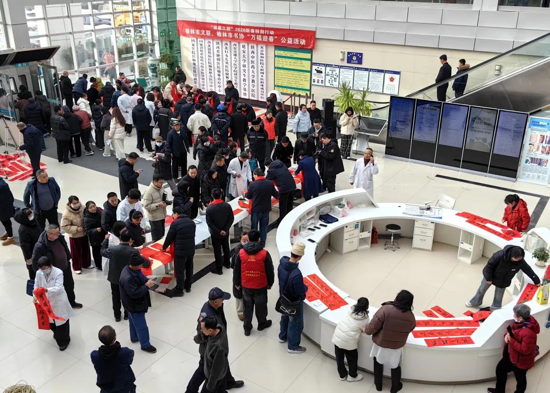 在榆林网讯:笔墨凝情传暖意,福字添春润医心。1月27日上午9时30分,榆林市“强基工程”2026新春特别行动暨“万福迎春”公益活动在榆林市第一医院门诊大厅正式启动。墨香与年味在此交融,文艺与温情在此汇聚,为坚守一线的医护工作者、就诊患者及家属送上了最真挚的新春祝福。
