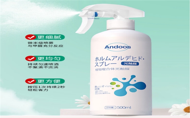 对于普通家庭而言,它极大地降低了除醛门槛。使用方法极其简便:只需将液体摇匀后,距离物品表面约30公分进行均匀喷洒,随后依靠自然光或室内光照射即可启动净化过程。“一喷一晒”,就能主动、快速地净化空气。通常,几瓶(500ml**标准装,可有效处理约20平方米区域)即可应对百平米左右的居家空间。