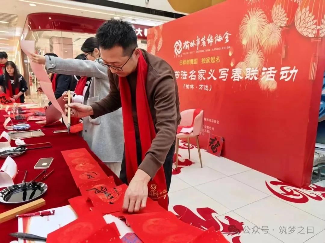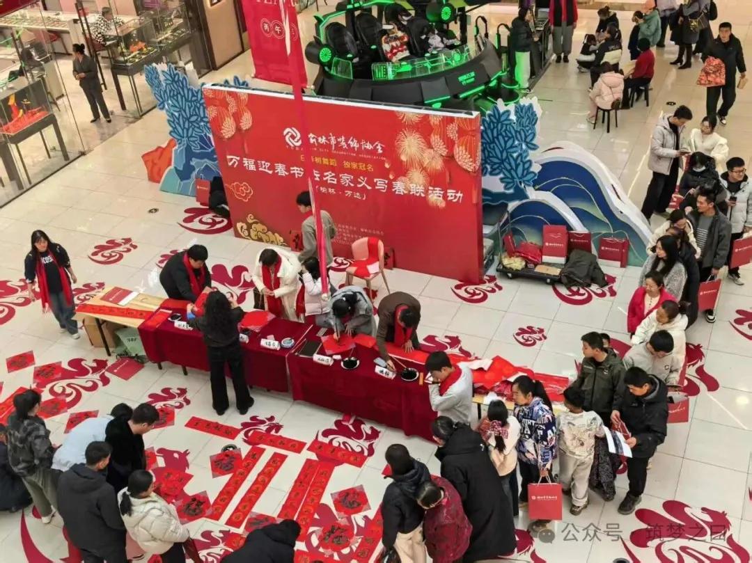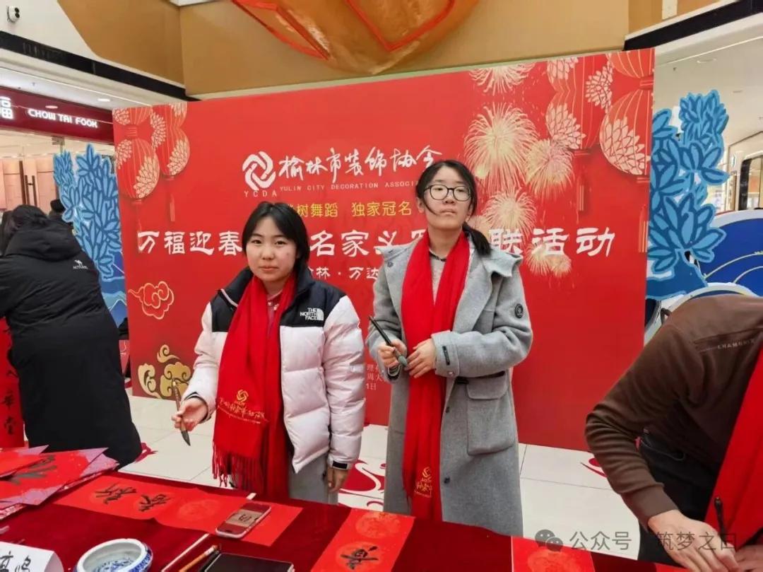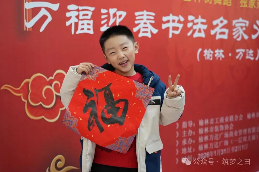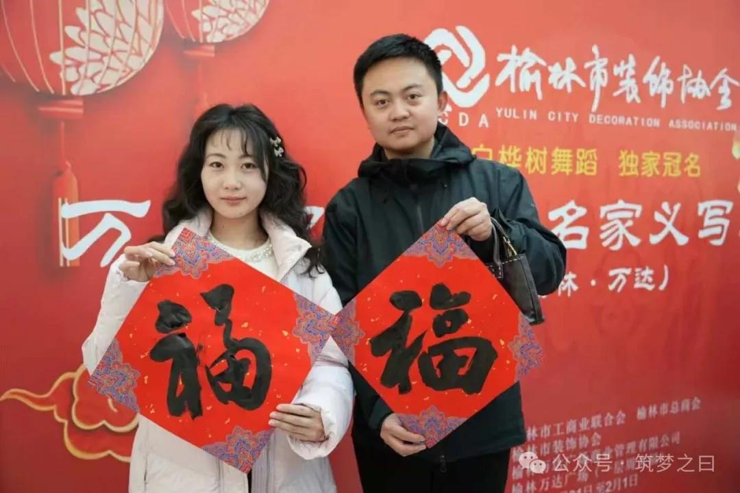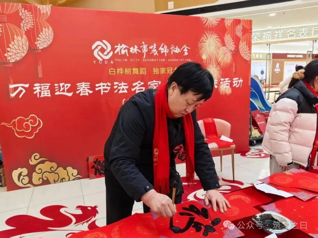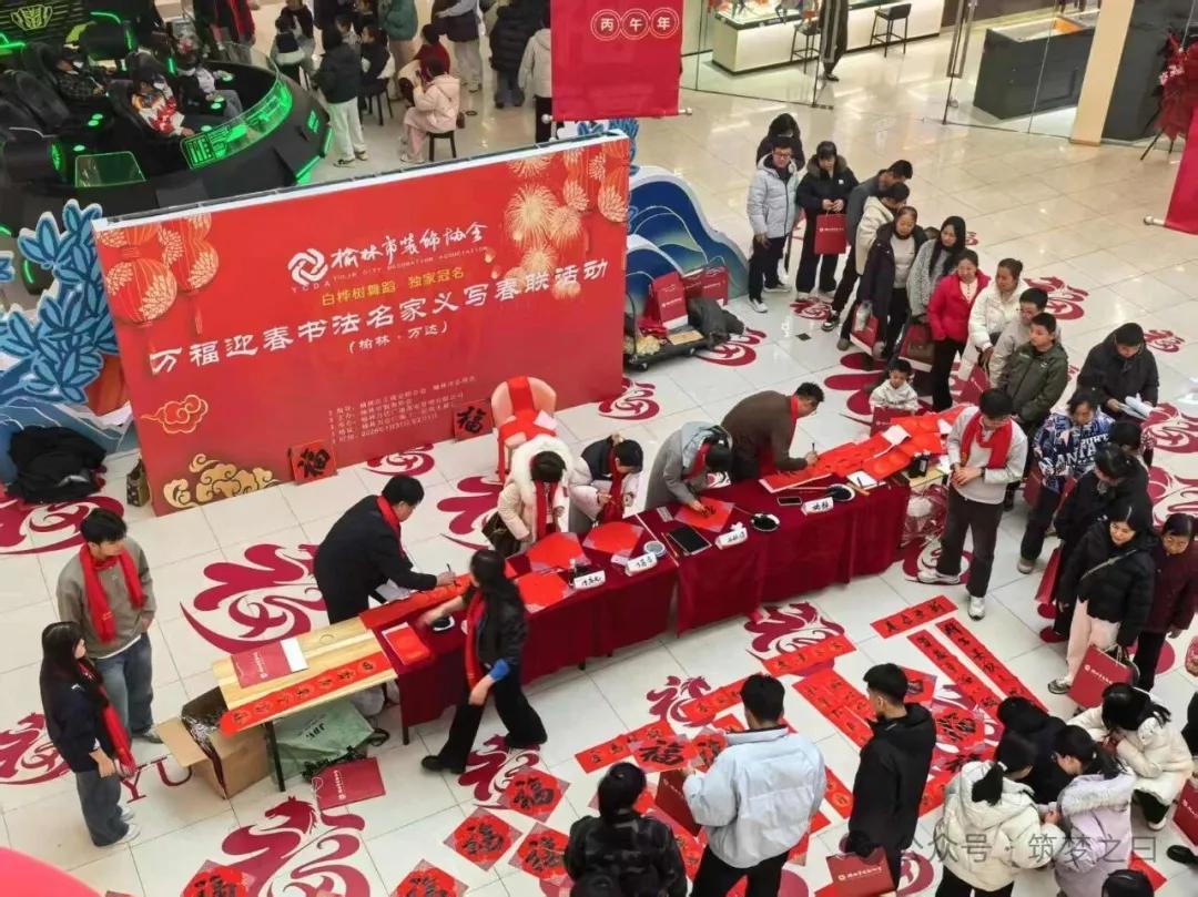 在榆林网讯:1月31日下午,由榆林市工商业联合会、榆林市总商会指导,榆林市装饰协会主办,榆林万达广场承办的2026丙午马年“万福迎春”书法名家公益送福活动在万达广场一楼举行,此次活动得到卡尔亚装饰、白桦林舞蹈培训机构的赞助支持。