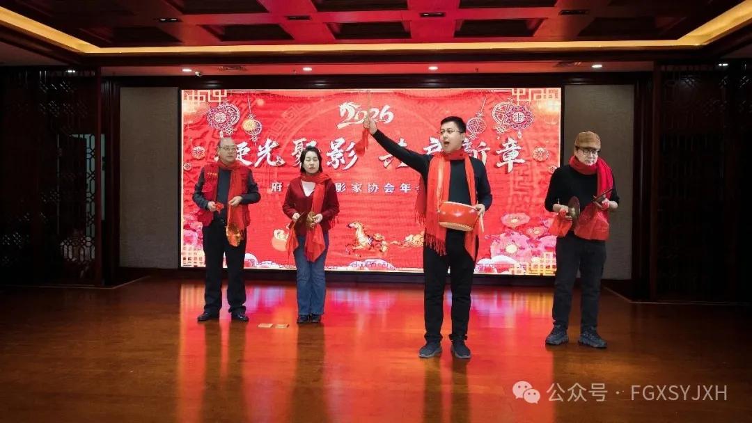 会议对年度摄影杰出者、先进工作者和优秀会员进行了表彰。县文联主席孙皓在讲话中充分肯定了协会年度工作,希望全体会员聚焦县域发展大局,创作出更多有温度、有深度、有力度的精品力作,讲好府谷故事。表彰环节后,年会还上演了会员自编自导的文艺节目,三句半、舞蹈、诗歌朗诵等形式丰富多样,充分展现了会员们多才多艺的一面和积极向上的精神风貌,为会议增添了浓厚的文化氛围。
