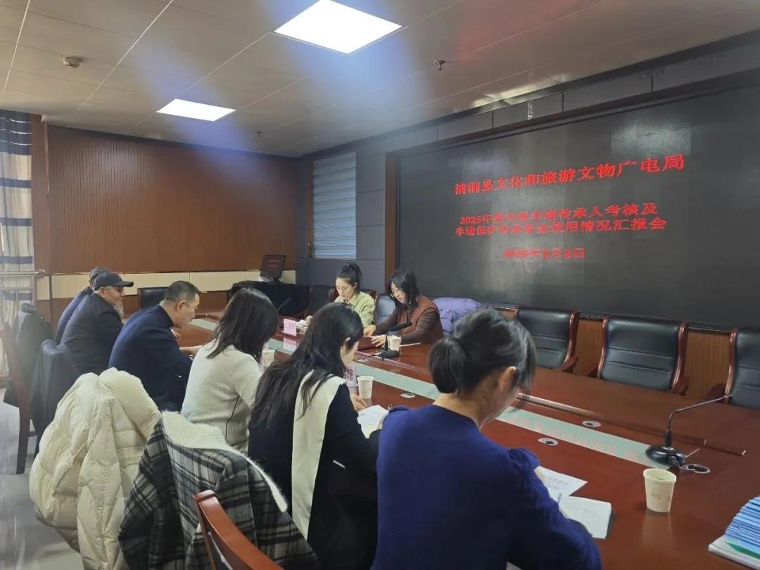 督查组一行首先召开座谈会,听取清涧县2025年非遗保护传承工作及市级非遗传承人考核工作开展情况、资金使用情况的汇报,详细了解我县非遗保护传承工作成效及市级以上传承人年度履职、技艺传承、传习活动、资料归档等工作落实情况,就考核流程、标准执行、存在问题及改进方向进行深入交流探讨,对清涧县非遗保护传承工作的扎实推进给予肯定,并提出针对性指导意见。
