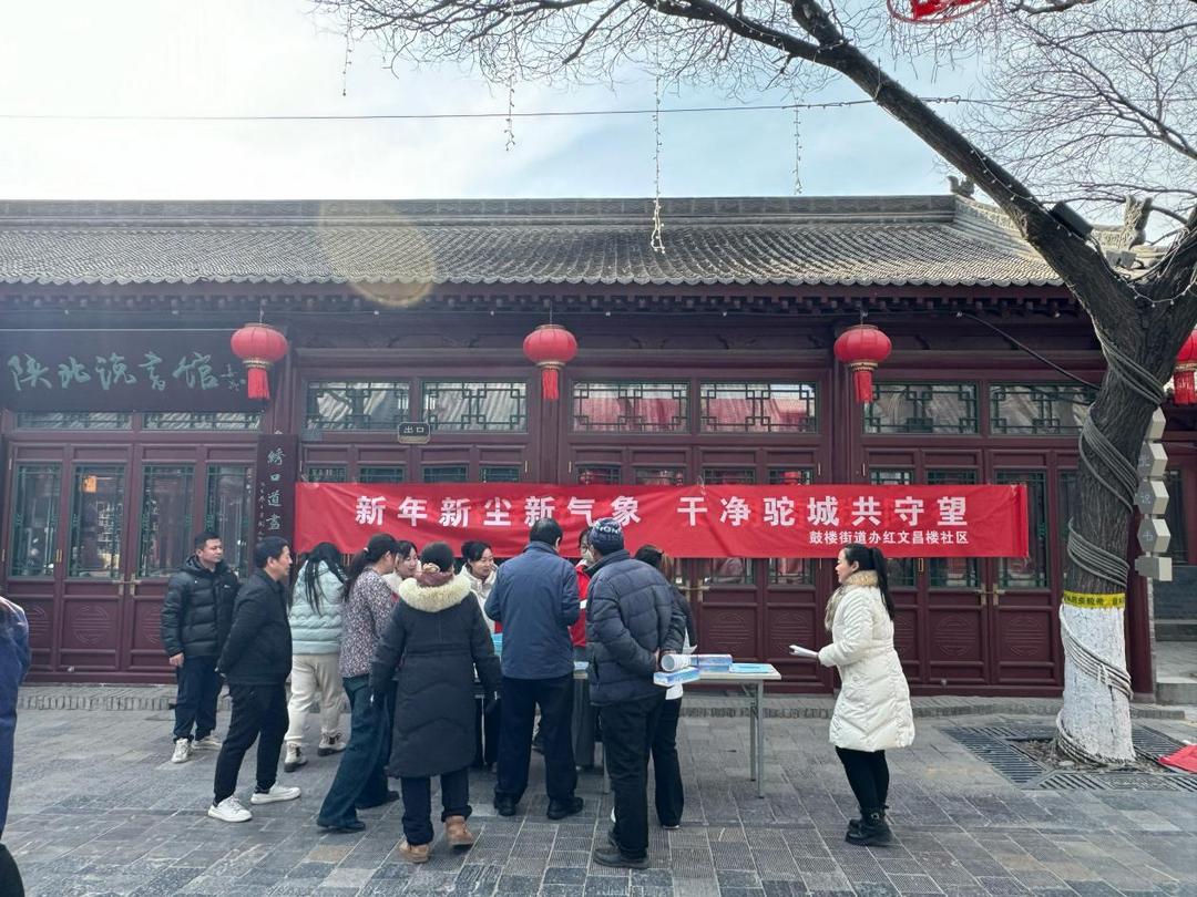 在榆林网讯:(通讯员 孙菁)为喜迎新春佳节,营造文明整洁的社区氛围,2月5日,榆阳区鼓楼街道红文昌楼社区开展“新年新尘新气象 干净驼城共守望”环境卫生主题宣传活动。