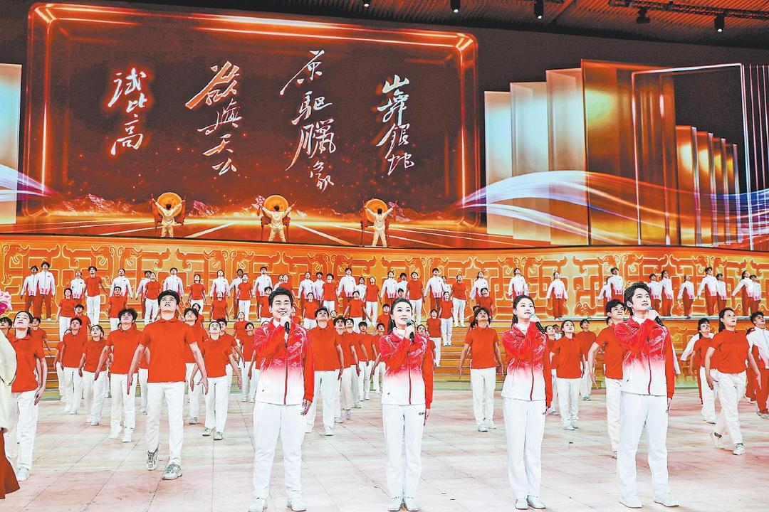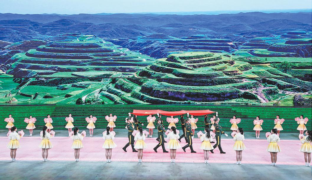 国旗入场,《东方红》旋律悠扬而起。大屏上铺展开一幅壮阔的黄河之景,随着画面变化,绥德师范、《沁园春·雪》手稿、延安宝塔山、八路军驻西安办事处旧址、马栏革命旧址、陕甘边革命根据地照金纪念馆等场景流动呈现。当8名仪仗队员高擎五星红旗,踏着《我爱你中国》的音乐铿锵走来,现场观众无不热血沸腾、激情澎湃。