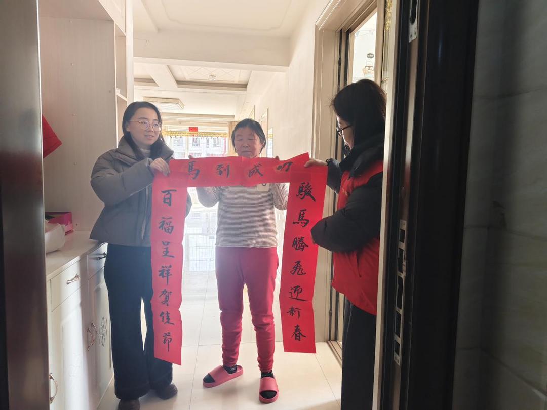 除了现场赠送,社区还组织了“送福上门”小分队。由社区工作人员和志愿者将一副副满载祝愿的春联送到辖区居民家中。居民王大姐手捧春联,激动地说:“社区年年都想着我们,这手写的春联贴起来,感觉心里特别暖和,年味儿一下就足了。”