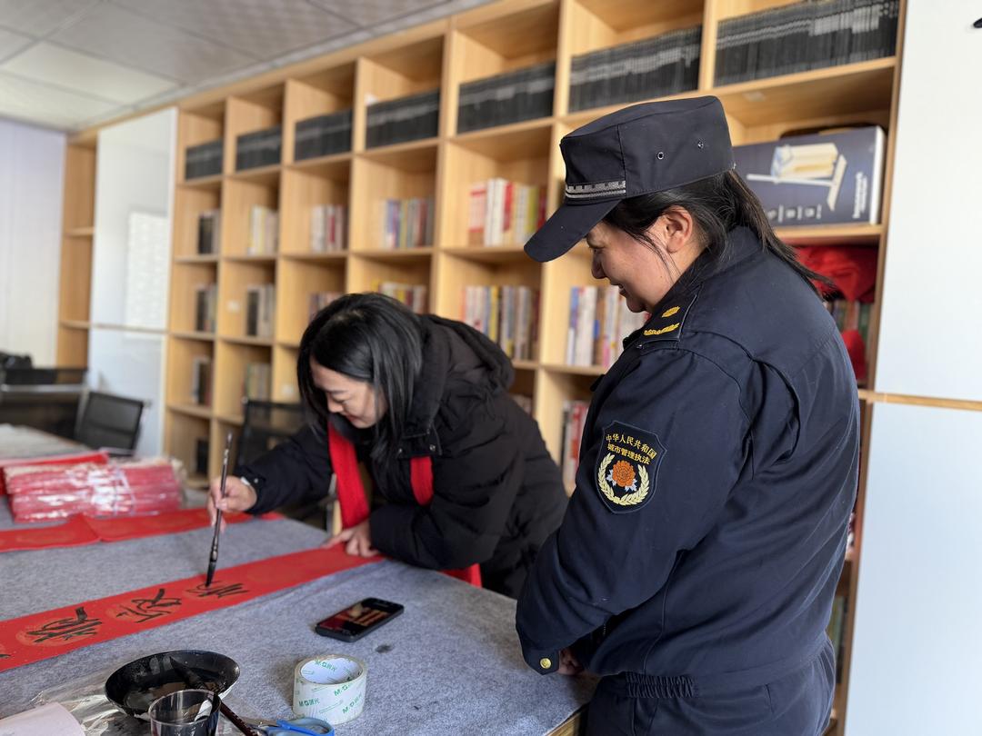 写春联专区人气高涨,辖区书法爱好者挥毫泼墨,一幅幅寓意吉祥的春联跃然纸上,中国人寿保险公司工作人员全程参与,有序发放春联及宣传品,传递新春祝福。户外活动结束后,社区组织双报到单位党员干部与困难群众开展暖心座谈,大家促膝长谈,详细询问群众身体、生活状况及诉求,鼓励其乐观生活、安心过年,叮嘱做好防寒保暖和居家安全,让困难群众深切感受到关怀与温暖。