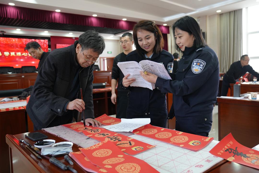 在榆林网讯:(通讯员 李婷婷)2月10日新春来临之际,绥德县公安局、县文联联合举办“笔墨传情送祝福 警民连心贺新春”写春联送祝福主题活动。多位书法协会成员和县局书法爱好者,以笔墨传情,以福韵暖心,为全局民辅警送上专属新春祝福。