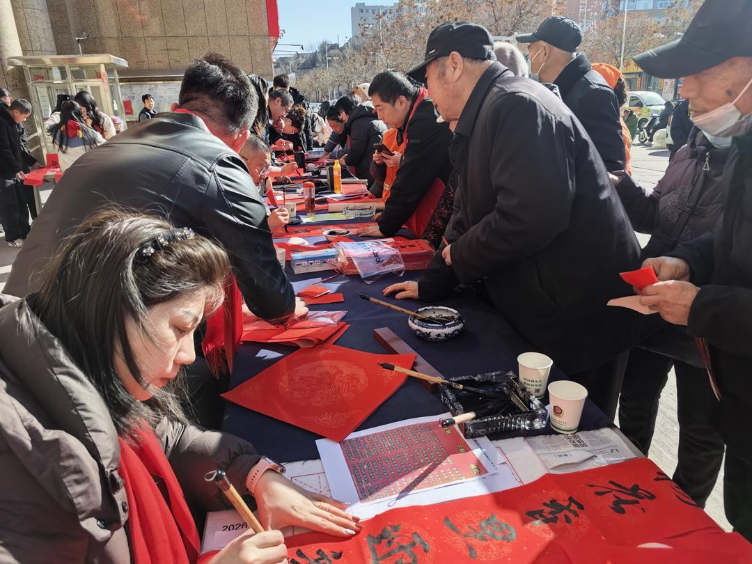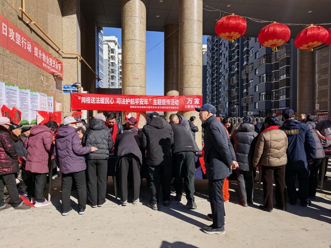 在榆林网讯:(通讯员 纪文俊)春节将至,年味渐浓。榆阳区崇文路街道芹涧路社区以“网格送法暖民心 司法护航平安年”为主题,组织“法律明白人”、书法爱好者走进小区,开展写反诈春联、送新春祝福活动。
