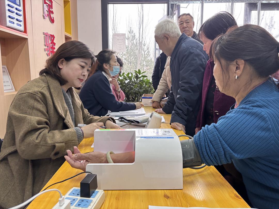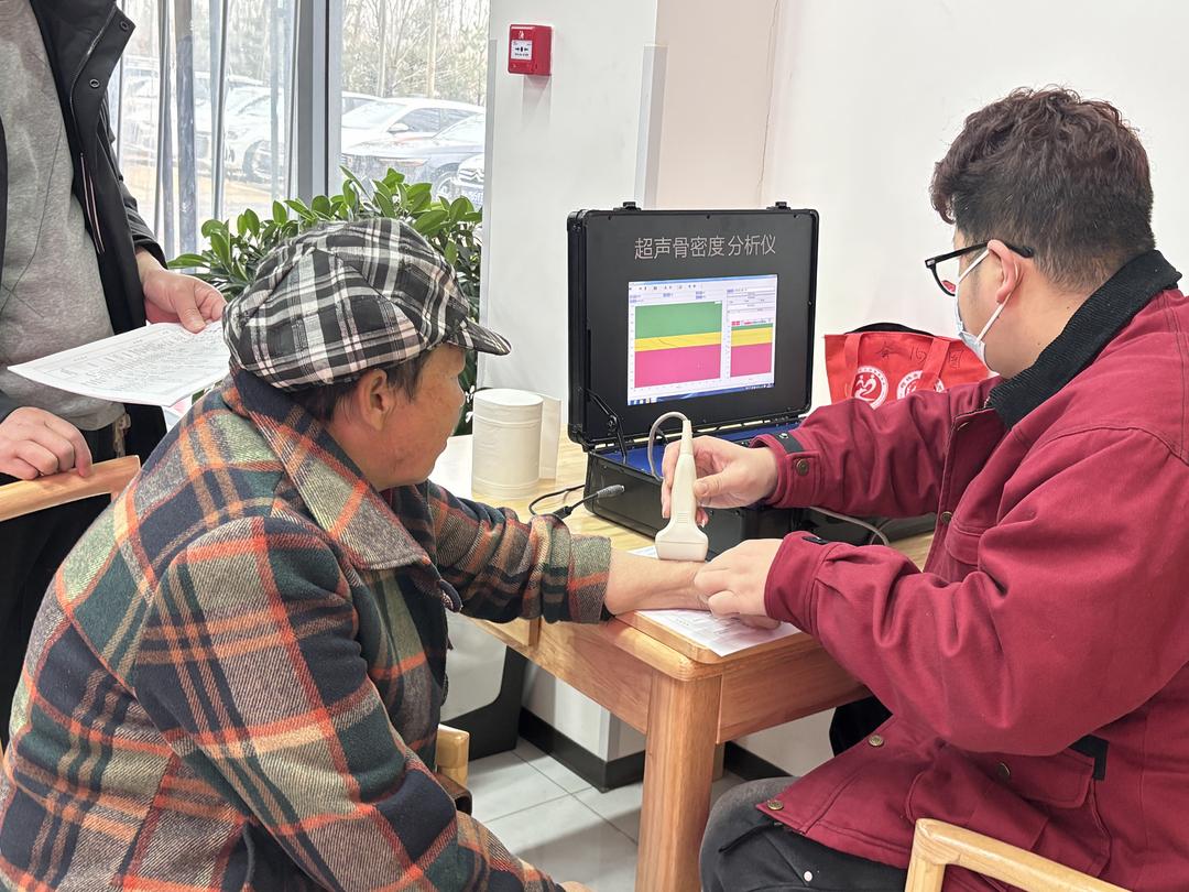 活动在迎滨路社区老年人日间照料中心内举行,一大早,中心便聚集了许多前来参加义诊的老人。来自榆阳医院和王家楼村第一卫生室的医护团队携带专业设备,为中心入住的老人及周边社区老年居民提供了全面的健康检查服务。检查项目涵盖B超、心电图、骨密度检测、血常规、尿常规以及血压、血糖测量等多个方面,基本覆盖了老年人常规健康监测的需求。