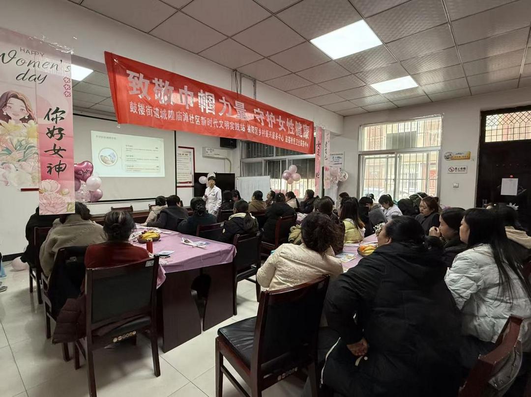 在榆林网讯:(通讯员 贾艳艳)阳春三月,芳菲盛开。在第116个“三八”国际妇女节来临之际,为进一步关爱广大女性身心健康,普及科学健康知识,提升自我保健能力,营造关心关爱女性的良好氛围,3月6日,榆阳区鼓楼街道城隍庙滩社区新时代文明实践站联合双报到单位榆阳区乡村振兴服务中心共同举办“致敬巾帼力量,守护女性健康”三八妇女节健康知识讲座暨公益+义诊活动,用专业守护健康,用温暖陪伴芳华。