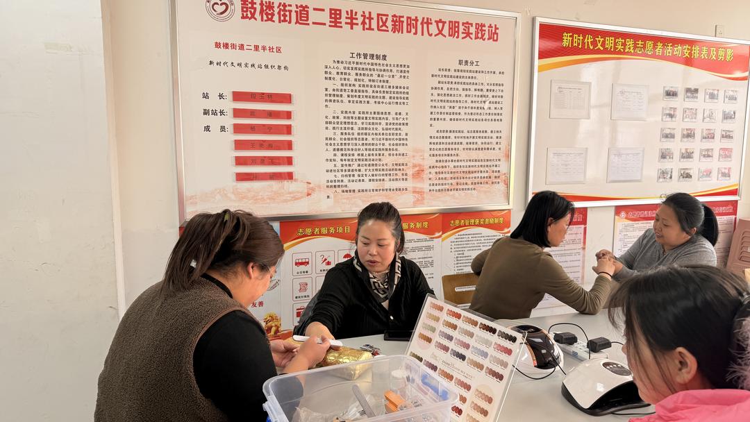 活动现场暖意融融、笑语盈盈。社区特意邀请专业美甲师现场坐镇,为前来参与的妇女朋友们提供免费美甲服务。美甲师们耐心细致地为大家讲解手部护理知识,根据每个人的肤色、喜好和指甲形态,精心挑选色系、修剪甲型、打磨抛光、上色定型,从基础护理到精致彩绘,每一个步骤都认真专注、温柔贴心。