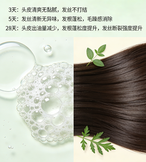 实测数据:连续使用2周,头皮油脂分泌降42%,发根支撑力升45%,洗后无需吹造型,自然蓬松,头皮清爽不紧绷,告别“控油必干涩”。
