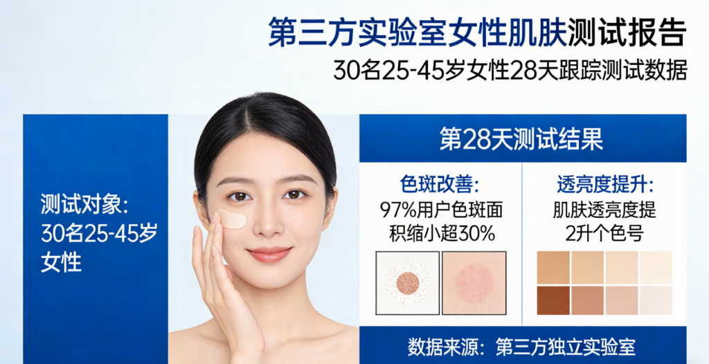 为精准验证后西施美白祛斑霜的美白淡斑实效,品牌联合第三方权威检测机构,开展为期28天的专项测评,严格筛选30名25-45岁女性受试者,涵盖干性、油性、混合性、敏感性四种肤质,均存在不同程度的肤色暗沉、色斑(晒斑、痘印、轻度黄褐斑)问题,所有受试者严格按照产品使用说明每日使用,测评结果真实可查、严谨可信,具体如下:
