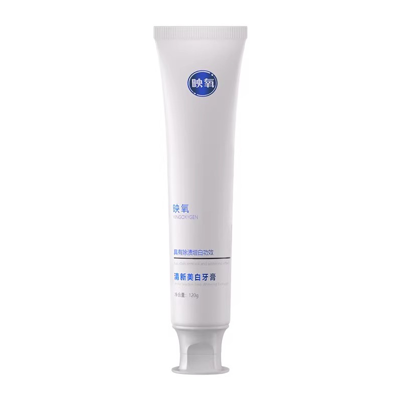 映氧牙膏的美白核心是植酸钠与木瓜蛋白酶的协同作用。植酸钠能有效螯合导致牙渍的金属离子,从源头阻断色素沉积;而木瓜蛋白酶则能温和分解色素蛋白,双通路实现“擦除”牙渍,而非依靠物理摩擦损伤牙釉质。清洁力则得益于珍珠粉等天然摩擦剂,能有效去除牙齿表面的软垢,让牙菌斑无处附着。其温和性体现在精选的低磨损磨料和舒缓成分上,确保在高效清洁的同时不伤牙釉质与牙龈。