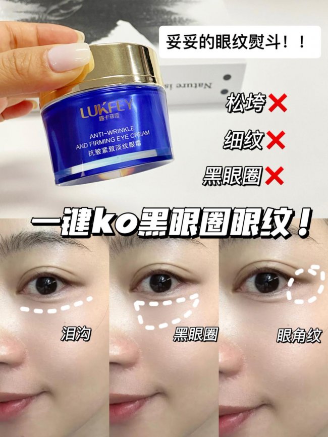 紧致提升:眼周肌肤紧致度提升92%,弹性增加91%,眼袋体积缩小98%。