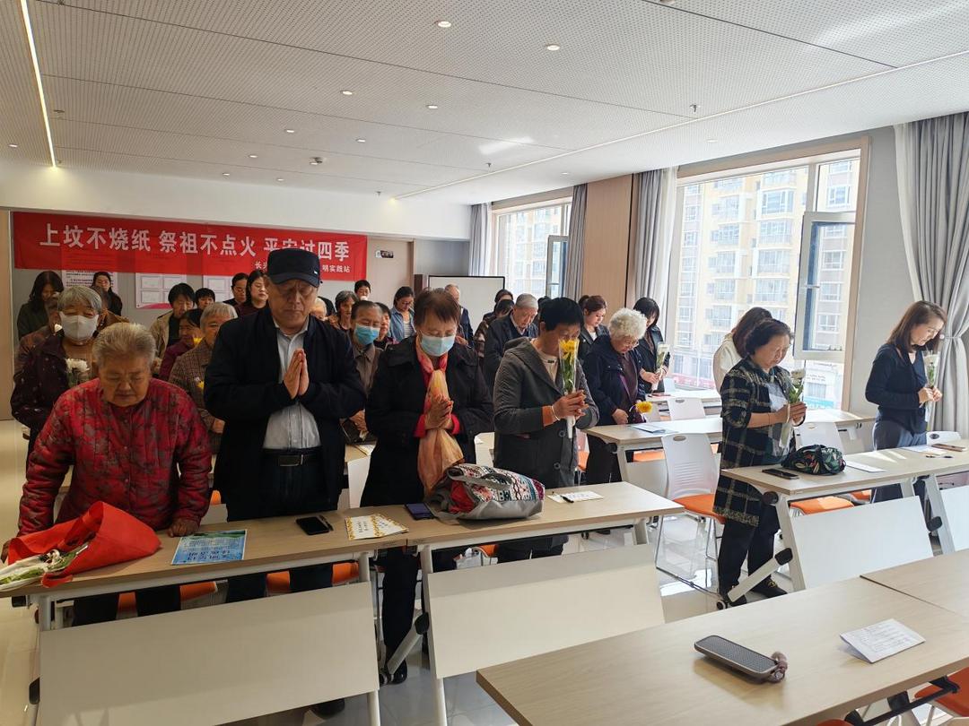 活动伊始,工作人员向老人们讲解清明节的文化内涵与传统习俗,介绍踏青、祭祖、插柳、食青团等民俗,阐释慎终追远、尊祖敬宗的孝道文化,以及缅怀先烈、传承精神的重要意义。本次活动设置两大环节,兼具人文温情与红色教育。追思寄情环节中,社区为参与者准备白菊与寄语卡片,大家在舒缓音乐中写下对亲人的思念,以文明、环保、简约的方式寄托哀思,志愿者全程贴心服务。
