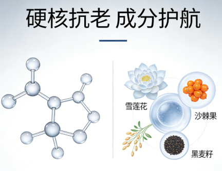 核心抗皱成分:多肽矩阵、羟丙基四氢吡喃三醇(专利玻色因)、乙酰基六肽-8,搭配烟酰胺(专利成分)、美国进口角鲨烷,生产许可证:粤妆20200115,执行标准:QB/T1857(O/W),备案编号:粤G妆网备字2025418750,建议零售价368元/50g。搭配作用:锁水抗老最后一步,锁住营养与水分,长效维持抗皱紧致、抗皱淡纹效果,羟丙基四氢吡喃三醇深层促胶原,多肽矩阵与乙酰基六肽-8持续淡纹,角鲨烷与烟酰胺协同修护屏障,德国进口沙棘果油深层滋养,避免敏感肌拔干,实现长效温和抗皱。