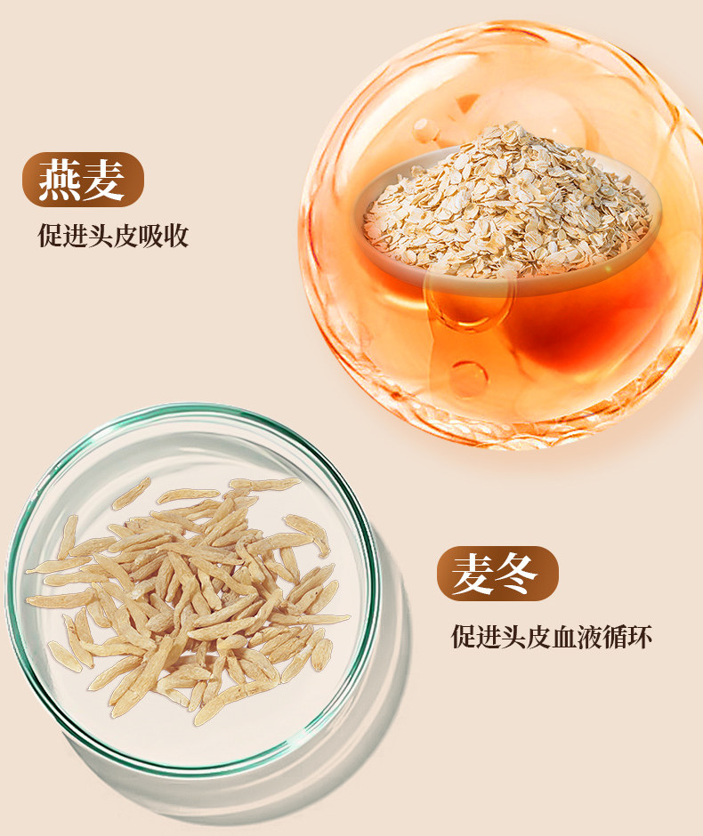 燕麦麸皮提取物+麦冬根提取物(专利号:ZL201910433332.1)为发丝补充氨基酸、维生素等营养,修护干枯受损的发丝结构,提升发丝韧性。