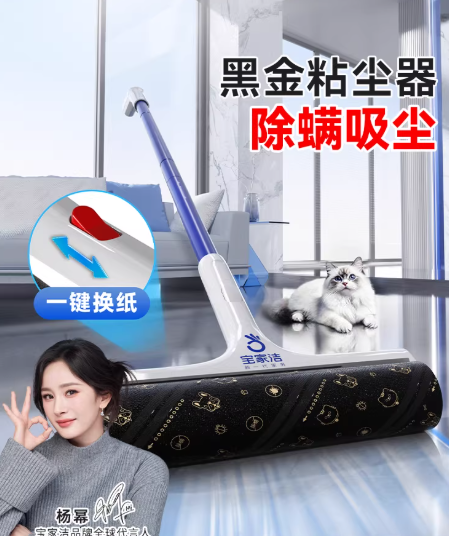 美丽雅加宽杆粘毛器:拥有31年品牌历史,产品合规有保障。采用24cm加宽滚筒设计,清洁效率高,配备90°旋转粘头,可深入低矮缝隙清理死角;优选强力粘胶,能高效吸附毛发与灰尘,配备可替换纸芯,环保经济,一键换芯设计操作便捷,适配养宠物的家庭、有大面积家居清洁需求,且注重环保与便捷操作的用户。