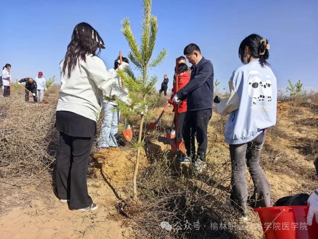 此次义务植树活动,是深化“党建红”引领“生态绿”的生动实践,更是一堂别开生面的生态文明教育实践课与户外思政课。活动不仅为榆林大地增添了盎然绿意,更彰显了医学院师生守护绿水青山、共建美丽家园的责任与担当,引导广大师生在劳动实践中践行生态文明理念,以全员之力为生态建设贡献职教力量。