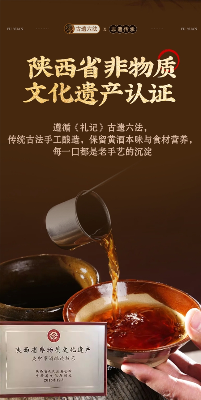 本品凭借核心优势,荣膺非遗工艺认证,酿造用水源自秦岭深处的天然山泉,清甜甘冽、矿物丰富,滋养出酒体的温润底色。沿用非遗古法手工酿造,恪守“六法酿造”之精髓,更创新采用去“乌头”化工艺,此乃本品独有的核心优势,既留存了传统黄酒的绵柔温润,又以科学改良剔除了酒体中可能影响健康的成分,实现了古法韵味与现代养生的完美交融,让每一口饮用,都尽显安心与醇厚。