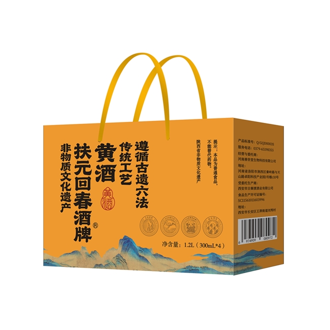 舞旗山黄酒产品包装古朴典雅,颇具古韵,适配送礼场景,尤其适合馈赠长辈,传递心意与关怀。