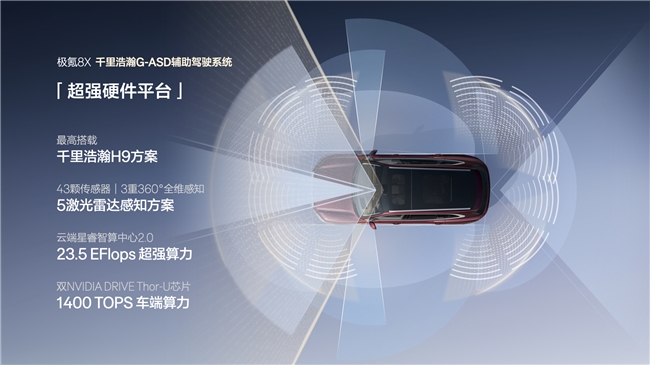 智能驾驶方面,新一代千里浩瀚G-ASD系统最高可选5颗激光雷达,实现全场景真无图智驾。长途自驾中,系统可大幅减轻驾驶疲劳,让家庭旅行更加轻松惬意。