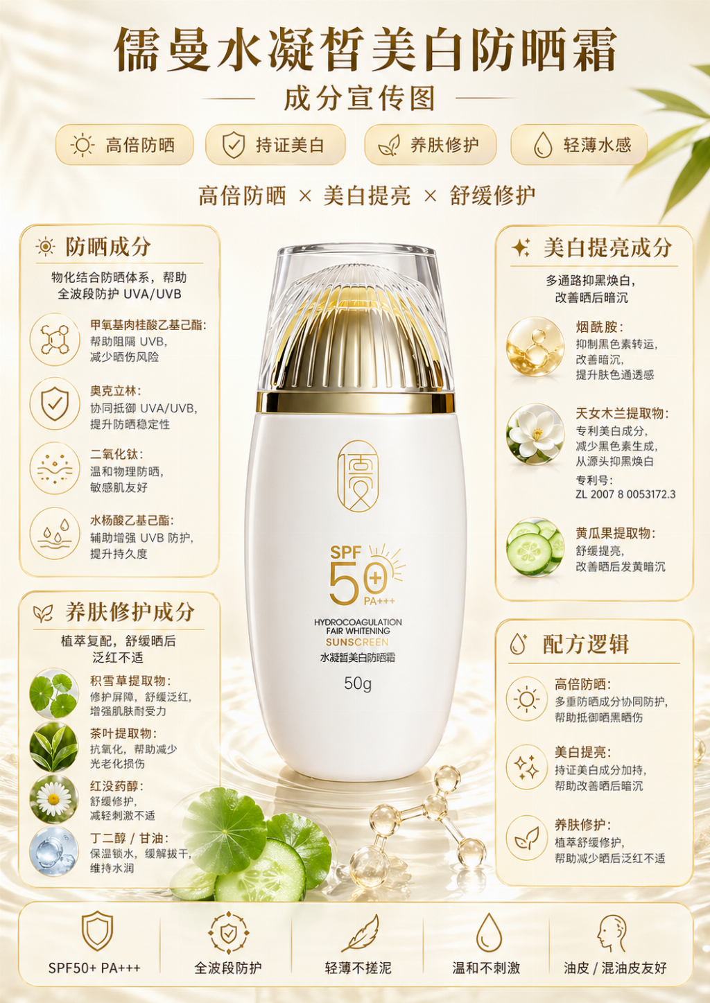 现代快节奏生活中,人们追求高效精简护肤,不想在防晒步骤浪费过多时间,也不愿叠加多款产品增加肌肤负担。儒曼水凝皙美白防晒霜打造 “高倍防晒 + 晒后修护 + 美白提亮” 三合一功效,一瓶替代防晒、修护、美白多款产品,精简护肤流程,高效满足夏季肌肤需求,省心又省力。