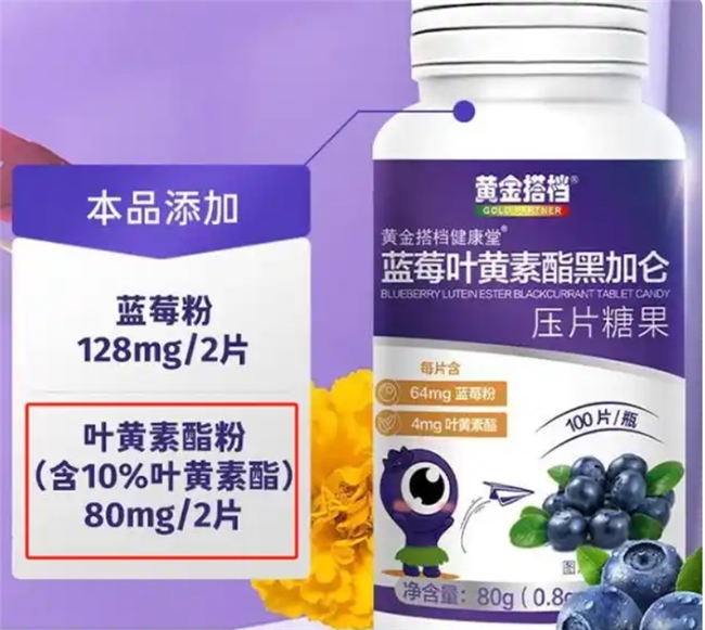 黄金搭档这款叶黄素主打全面养护,每100g含叶黄素590mg,含量能满足日常基础需求。核心配料包含叶黄素、β-胡萝卜素、维生素C和蓝莓提取物,多种营养成分协同作用,全面补充眼睛所需营养,辅助改善眼部状态。