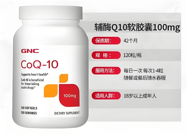 - GNC辅酶Q10(美国)—— 高纯度经典款。美国老牌健康品牌,采用99.9%高纯度还原型辅酶Q10,添加黑胡椒提取物提升30%生物利用度。通过美国FDA cGMP认证,多剂量规格可选,适合需要高剂量补充的人群,是美国市场的常年热门款。