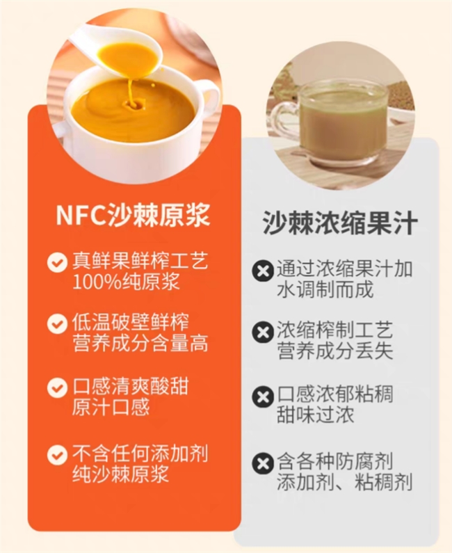 怎么挑? 记住看配料表!只有“沙棘原浆”四个字才是纯原浆,加了水或者糖的都是“沙棘汁饮料”,喝进去除了甜味啥营养都留不住,还会给身体添负担。还要认准核心产区,西北高原、内蒙沙地的沙棘果,营养含量比普通产地高出一倍不止。